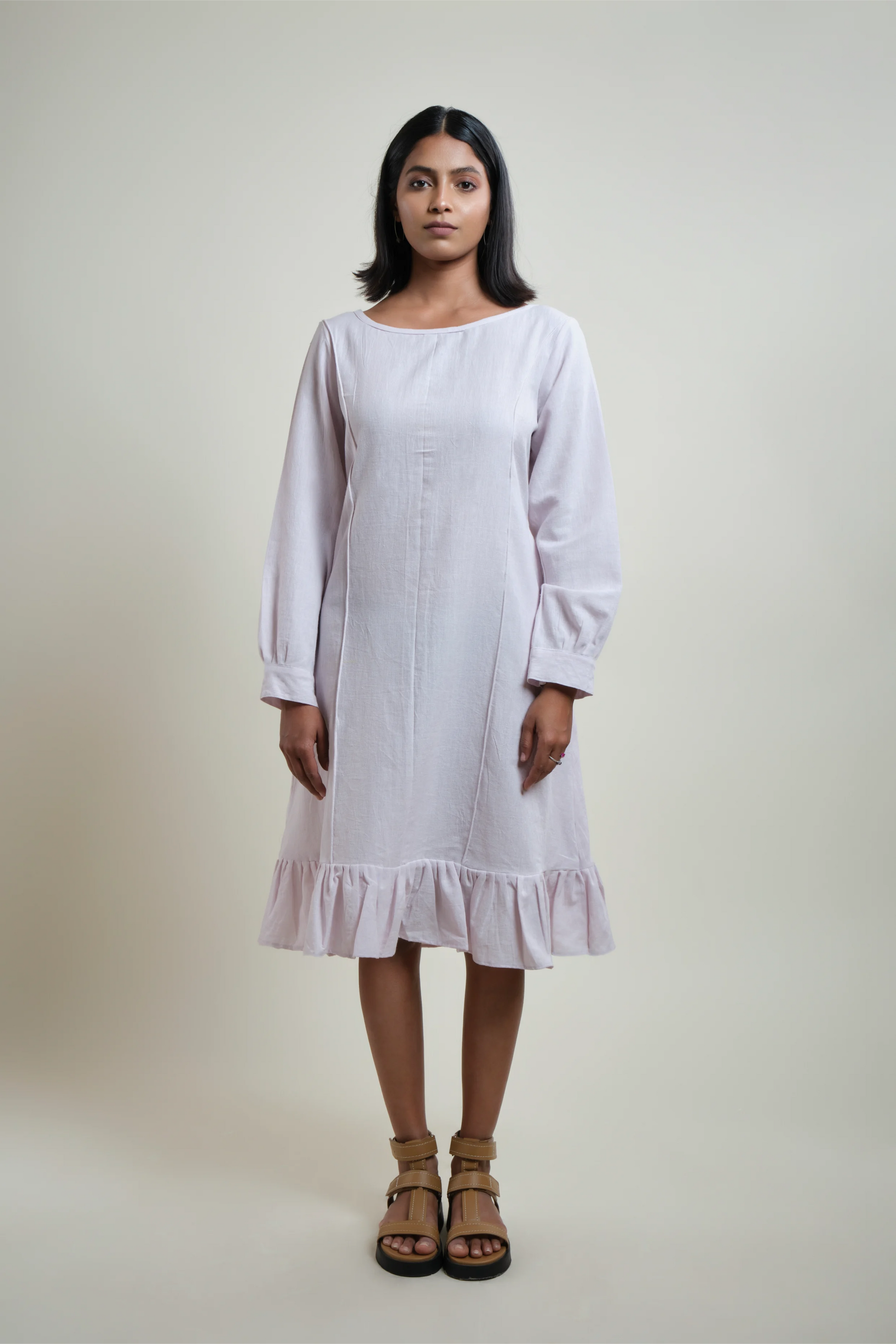 Full-sleeve dress with closed neck and piping in front with button details at the back and frill at the bottom. When in doubt, go for Majas dress.