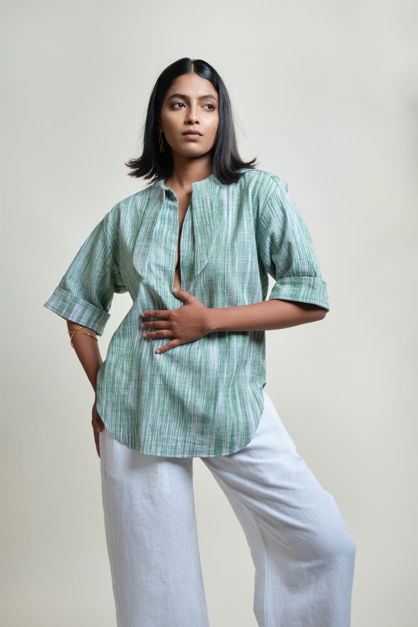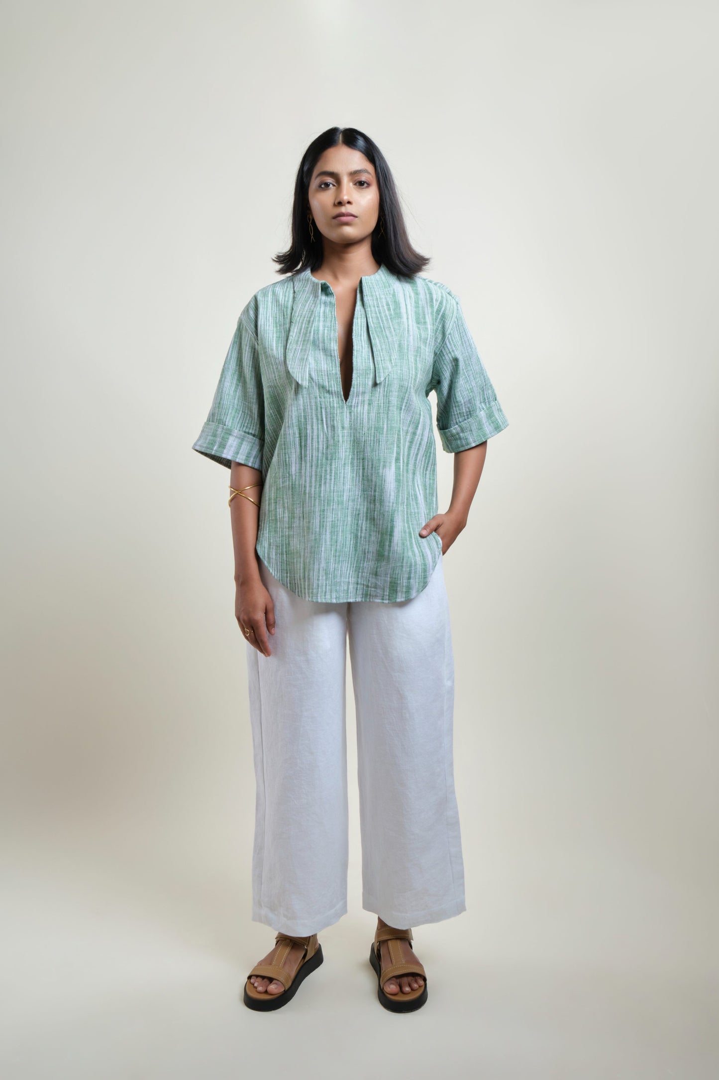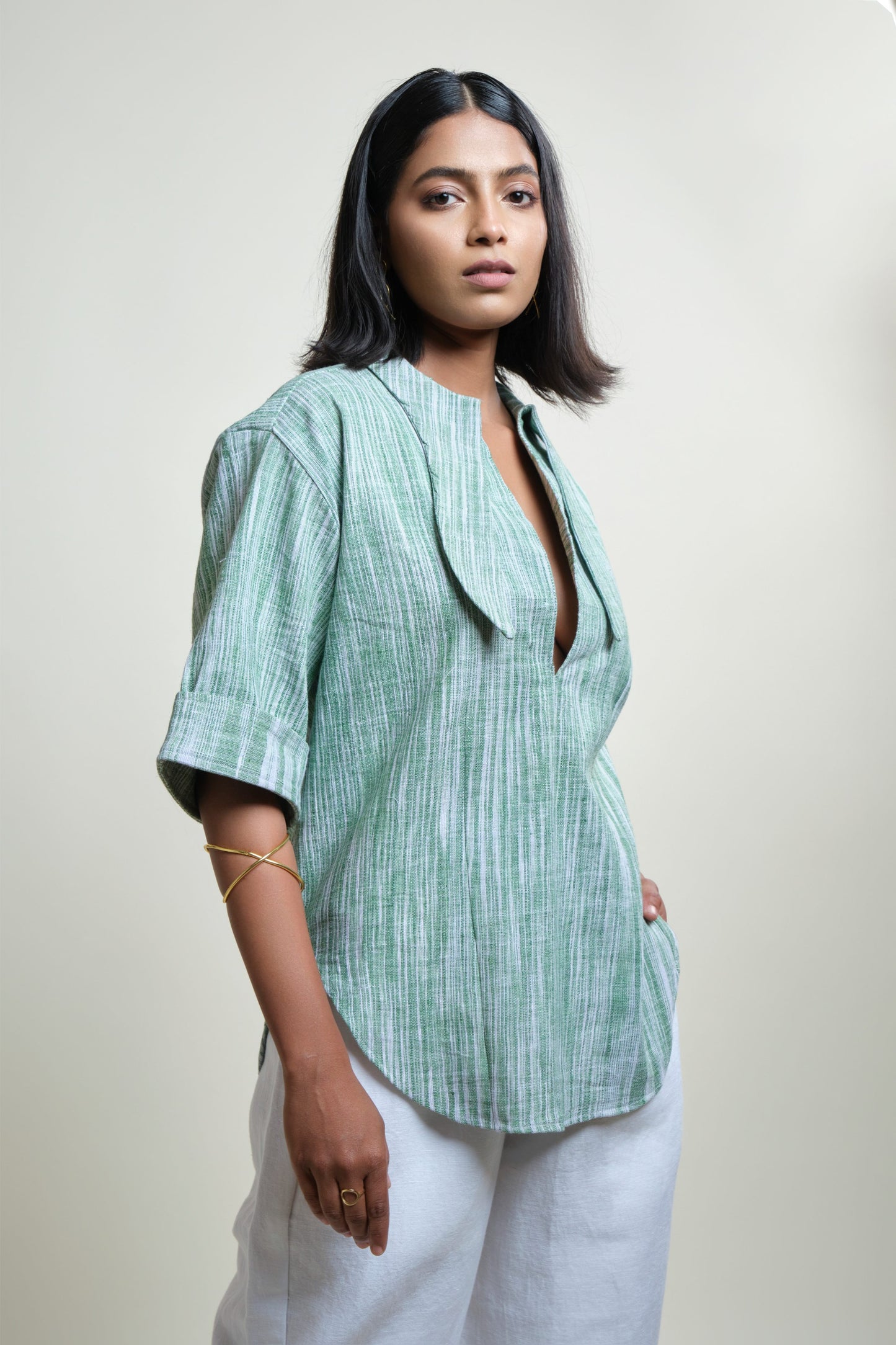 U-shaped top with long collar with slit neck and half sleeves. This is our favourite summer pick. Its comfortable, stylish, and fits you right.