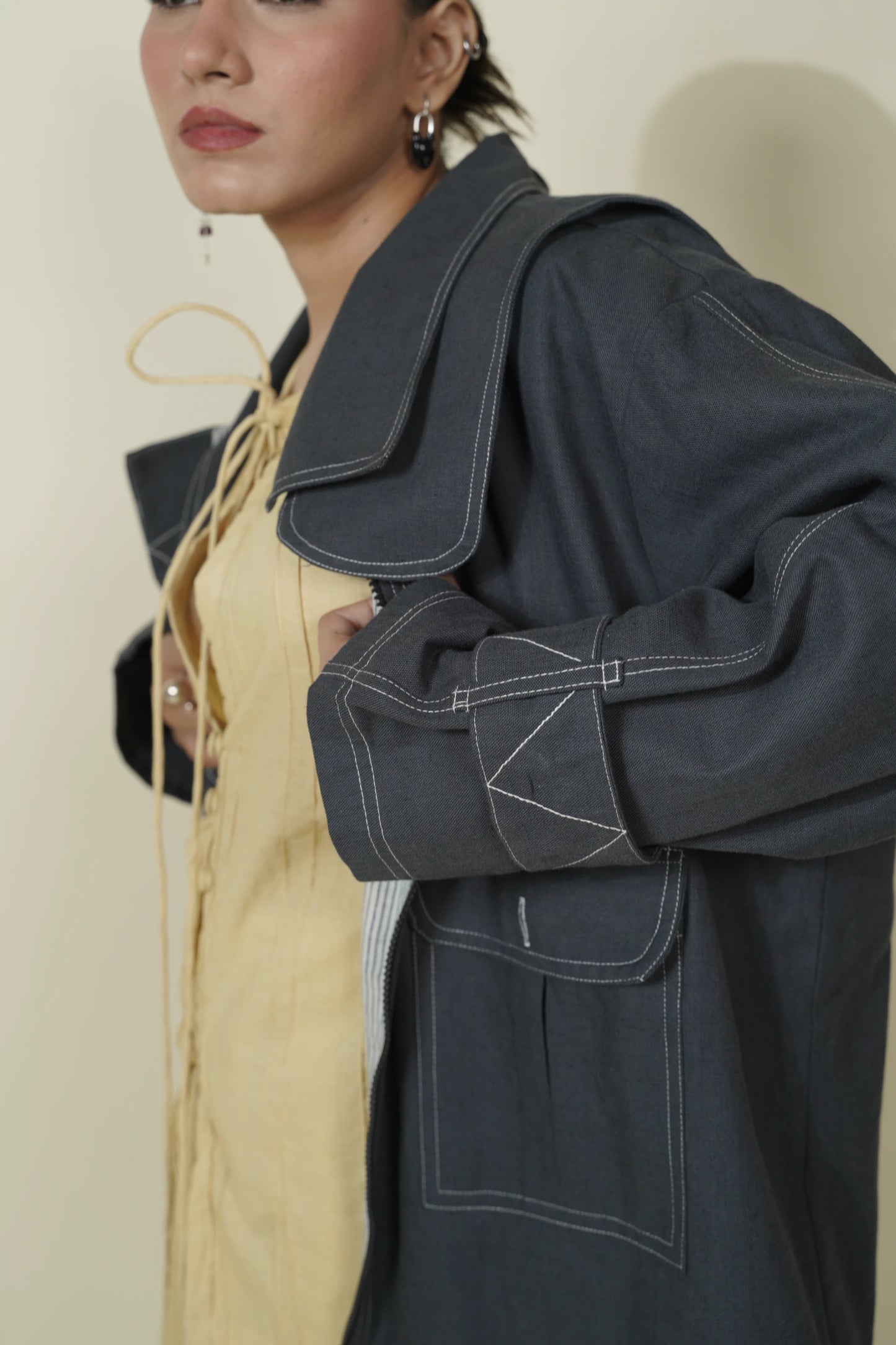This jacket seamlessly blends fashion-forward design with a commitment
